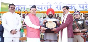 Dehradun, 7 Nov: The Silver Jubilee of Uttarakhand’s State Formation Day was celebrated with grandeur and patriotic fervour at the Police Lines in Race Course here today. On this occasion Governor Lt Gen Gurmit Singh (Retd) and Chief Minister Pushkar Singh Dhami led the celebrations. They inspected the ceremonial parade and honoured the persons who have brought pride to the state through their contributions in various fields.